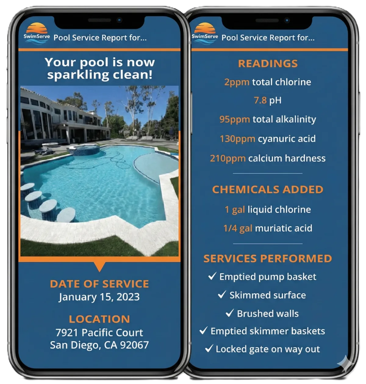We believe clear communication matters. That’s why we use modern reporting tools to keep you fully informed about your pool’s condition and the work completed during every visit.